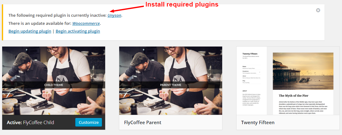 After Flycoffee theme is uploaded, click Activate flycoffee-child.