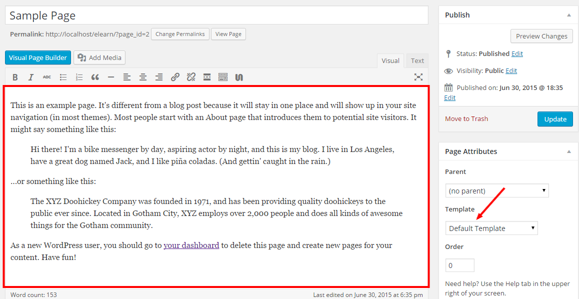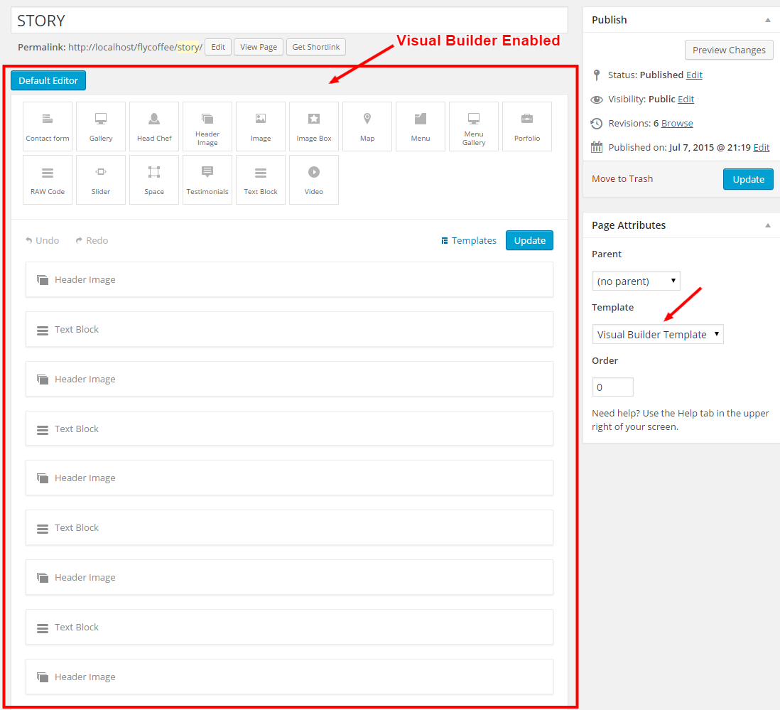 Full Width Page Template for theme visual builder.