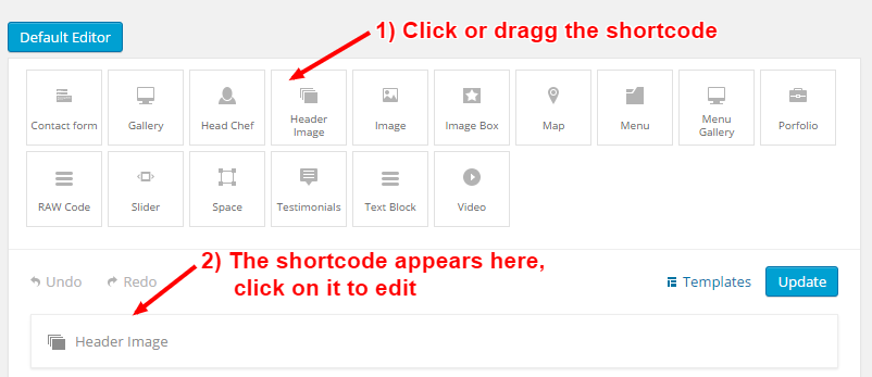 Each shortcode are similar in use an they can be added very easy by clicking on them or dragging them in the content. The difference between them