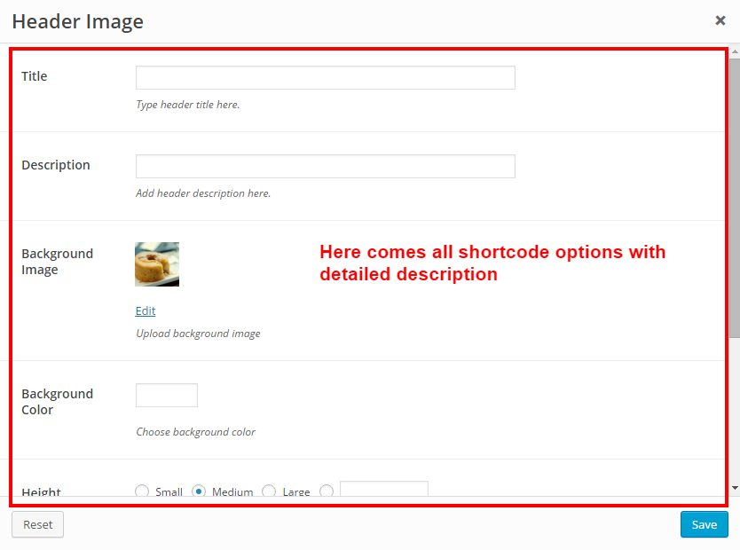 are the options provided. Each shortcode have different options with deatailed desription