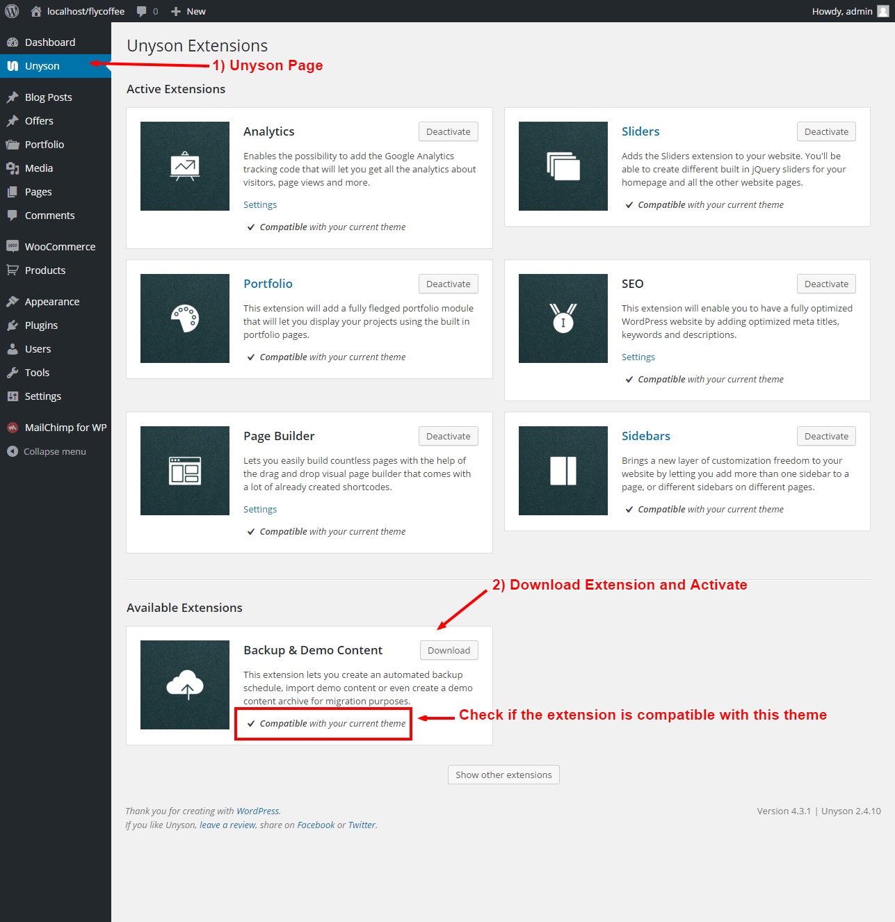 Download Unyson framework's extensions