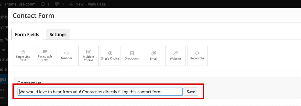 Click on the Contact Form Shortcode added to the page and this will open a pop up with the Contact Form Builder