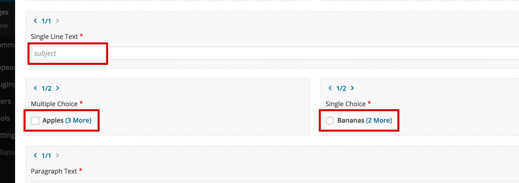 All the fields have simplified representations containing helpful info about that field. It can be the placeholder text in the case of single line text, or the first choice in the case of a multiple choice field.