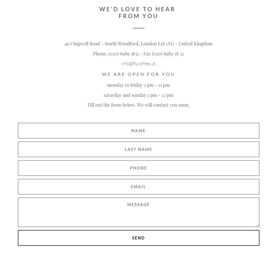 Flycoffee use Contact Form Extension from Unyson.