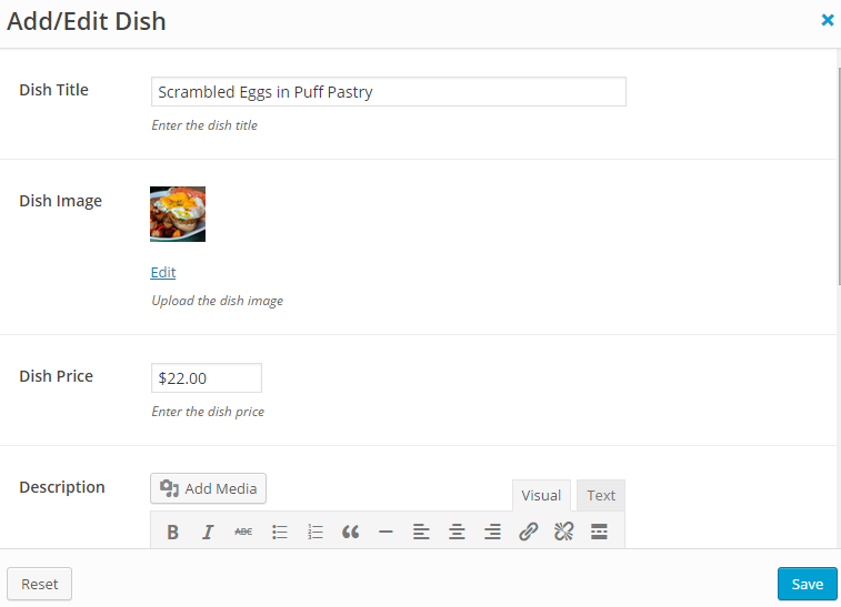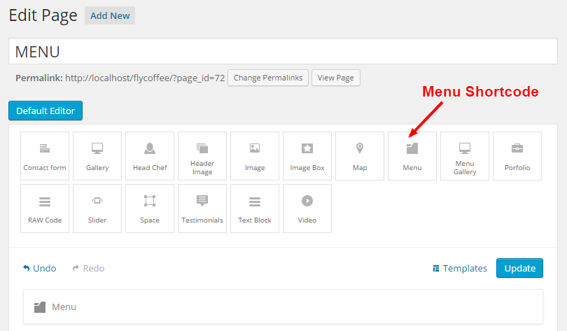 Menu Shortcode is one of the most important theme's shortcodes. It display your Restaurant Menu