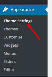 After the theme is installed, a new menu page called Appearance›Theme Settings will appear on the bottom left of your WordPress administration area.