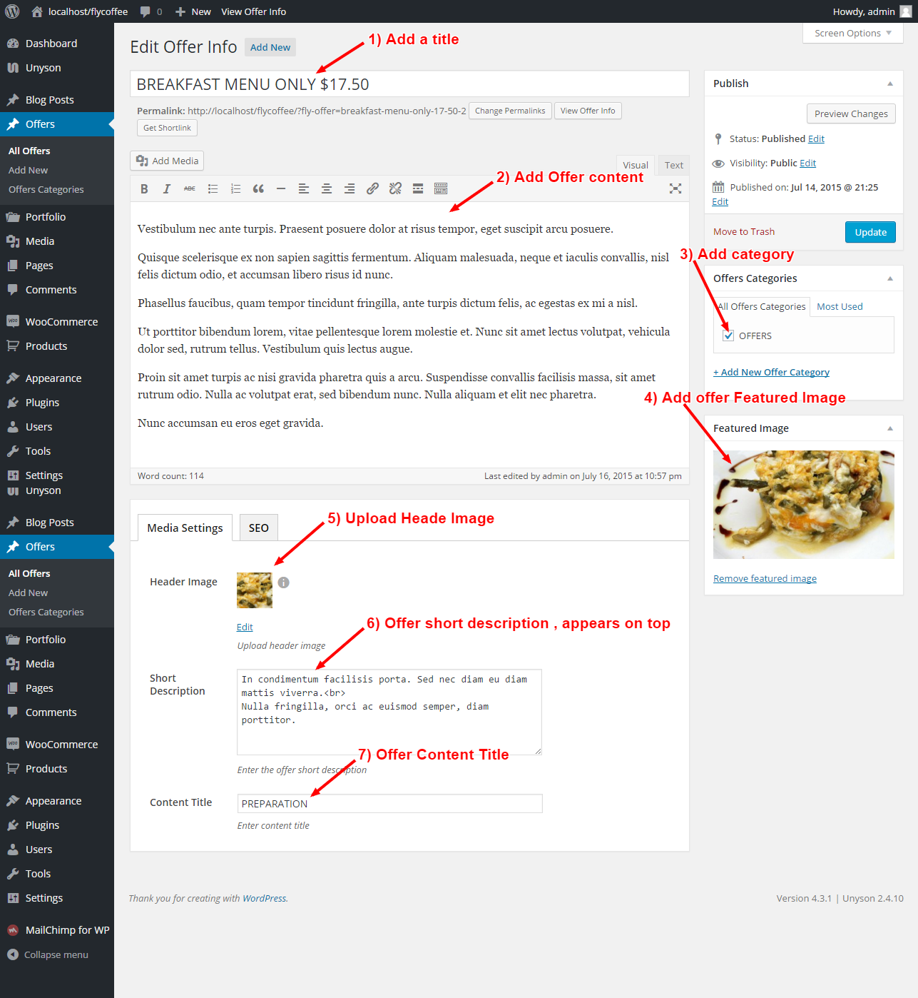 Offers are custom post types that allows you easy to add different offers for your website. Offers Posts are